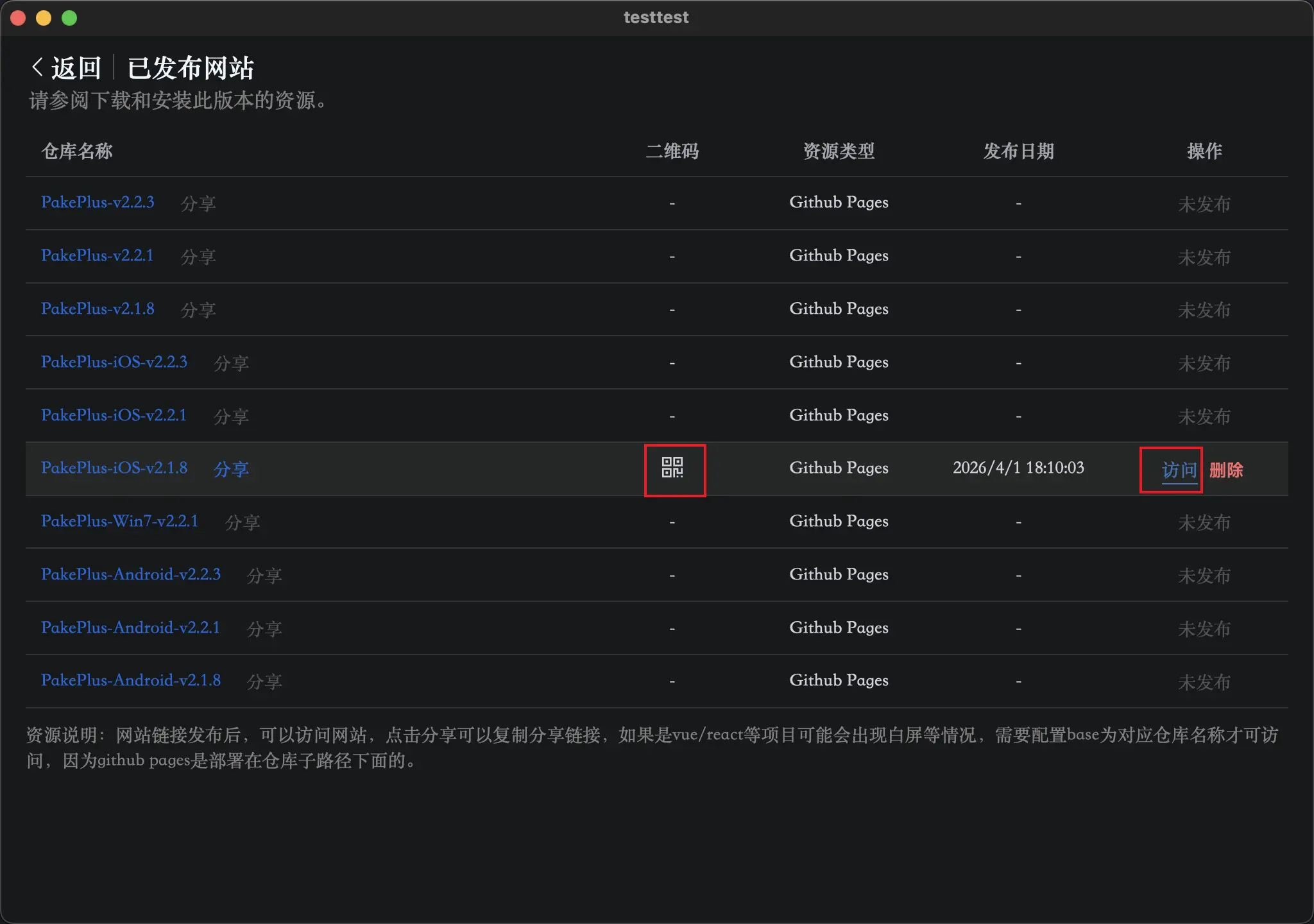 PakePlus 现在支持将静态文件发布为在线网站了,无论你是 html 代码,还是用 vue、react 等框架写的代码,只要最后都编译为 html 代码,就都可以发布为在线网站了,并且是全球可访问永久免费,因为它使用的是 github pages 发布的,所以不用担心跑路,因为后台够硬。可以观看视频教程:PakePlus 可免费发布 vue/react/html 为在线网站了